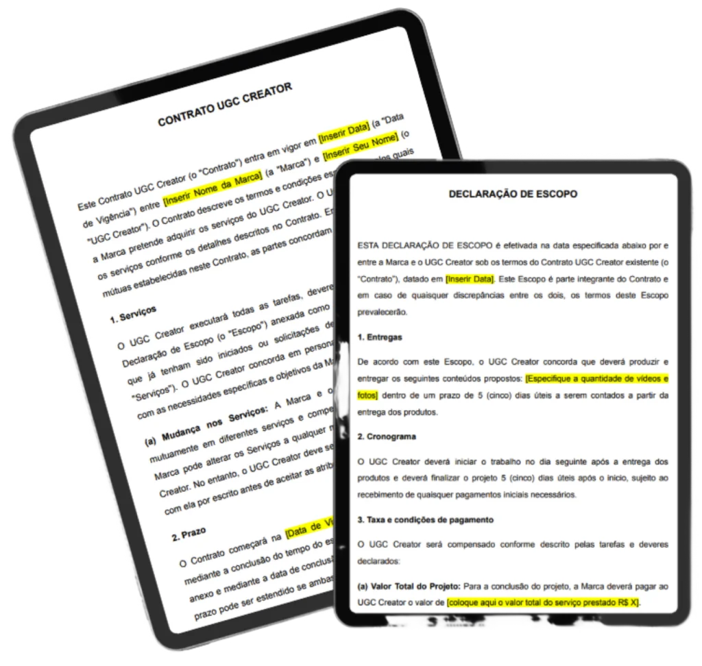 Proteja seu trabalho com um contrato profissional e claro, feito para garantir que você e as marcas estejam sempre alinhados.