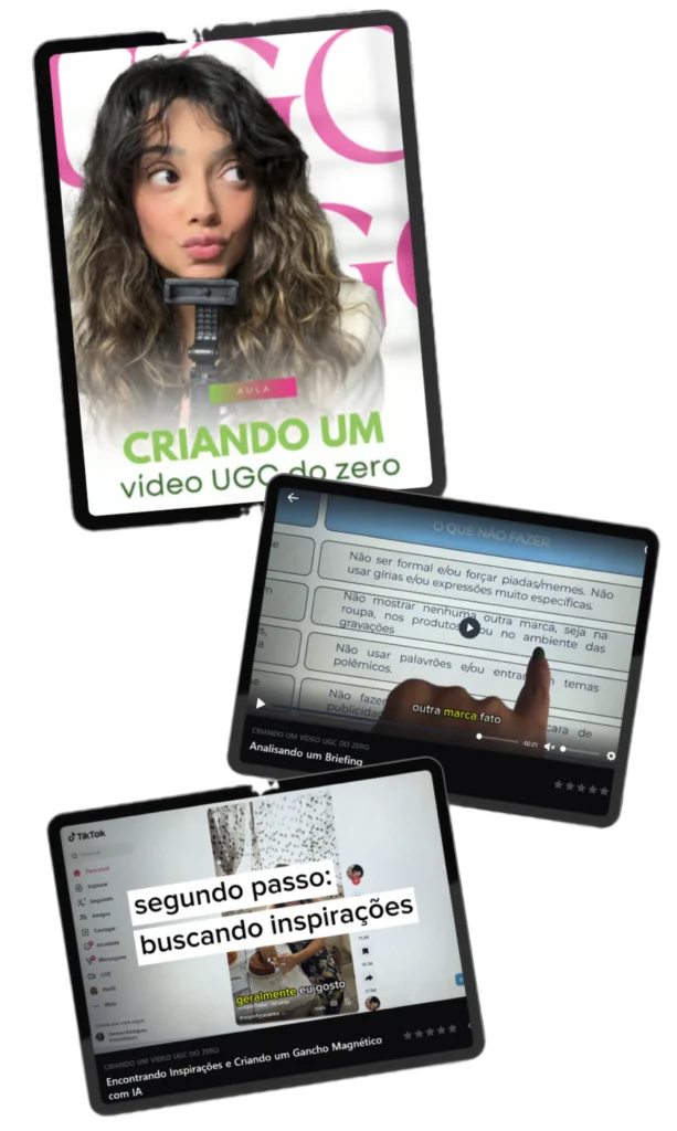 Como começar a criar seus primeiros vídeos UGC, mesmo sem experiência, e evoluir com cada criação.